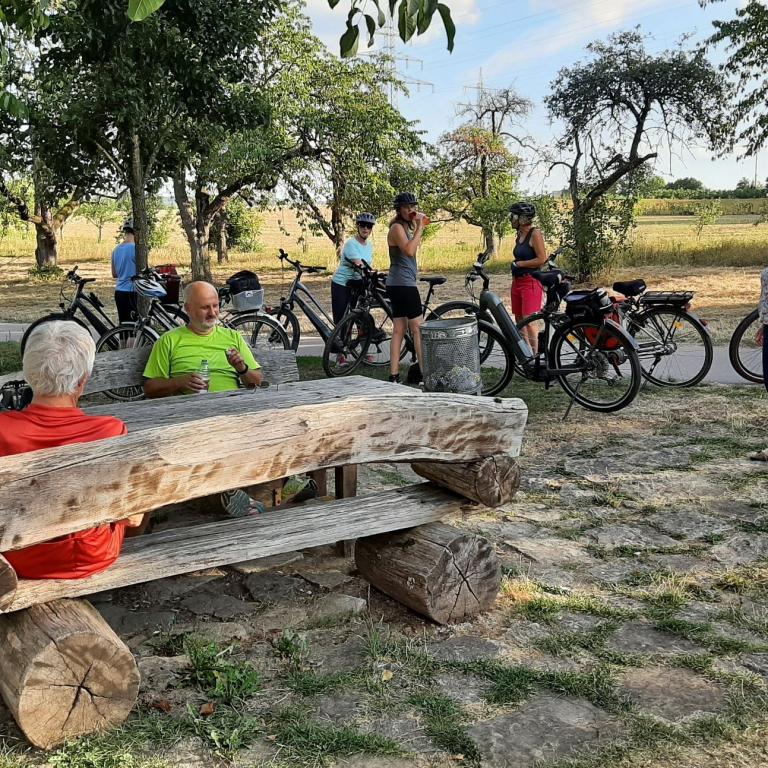 Eine Radtour von Lauffen, über Kirchheim, durchs Baumbachtal nach Bönnigheim. In der "Alten Apotheke" ging man Essen.