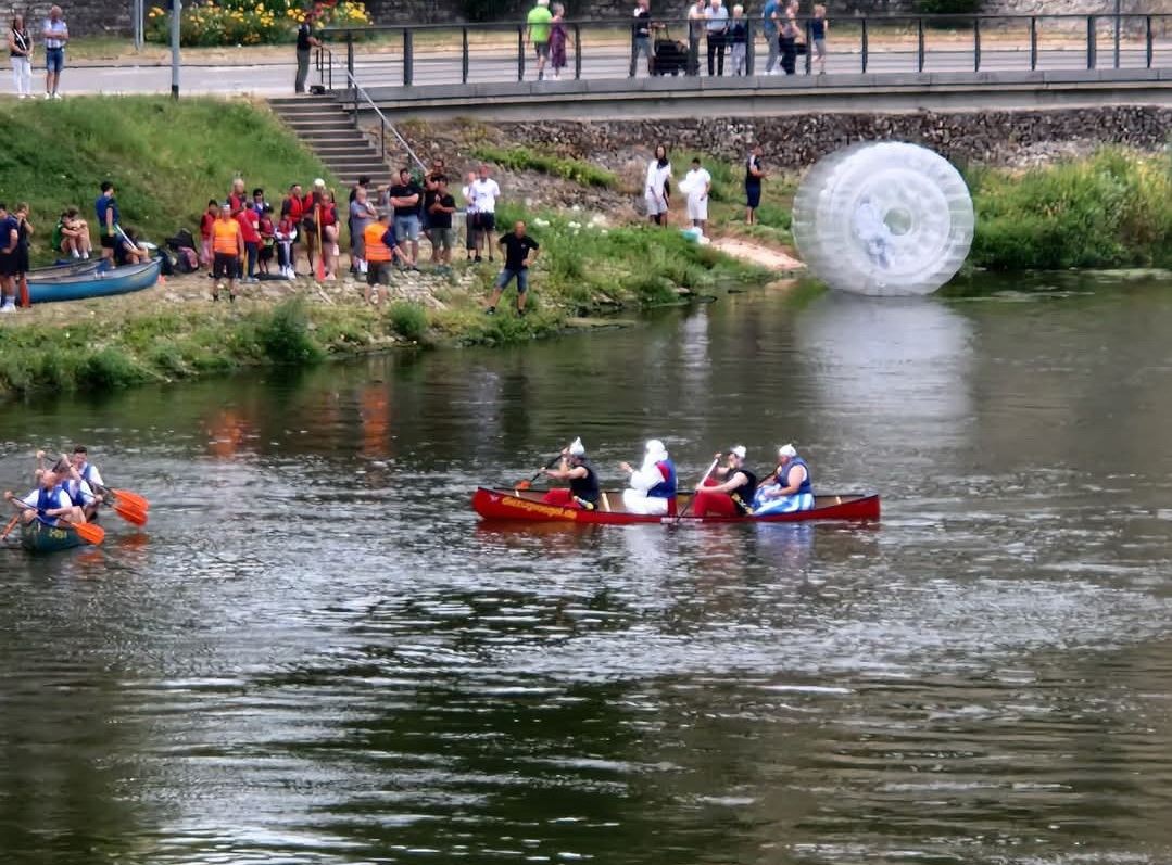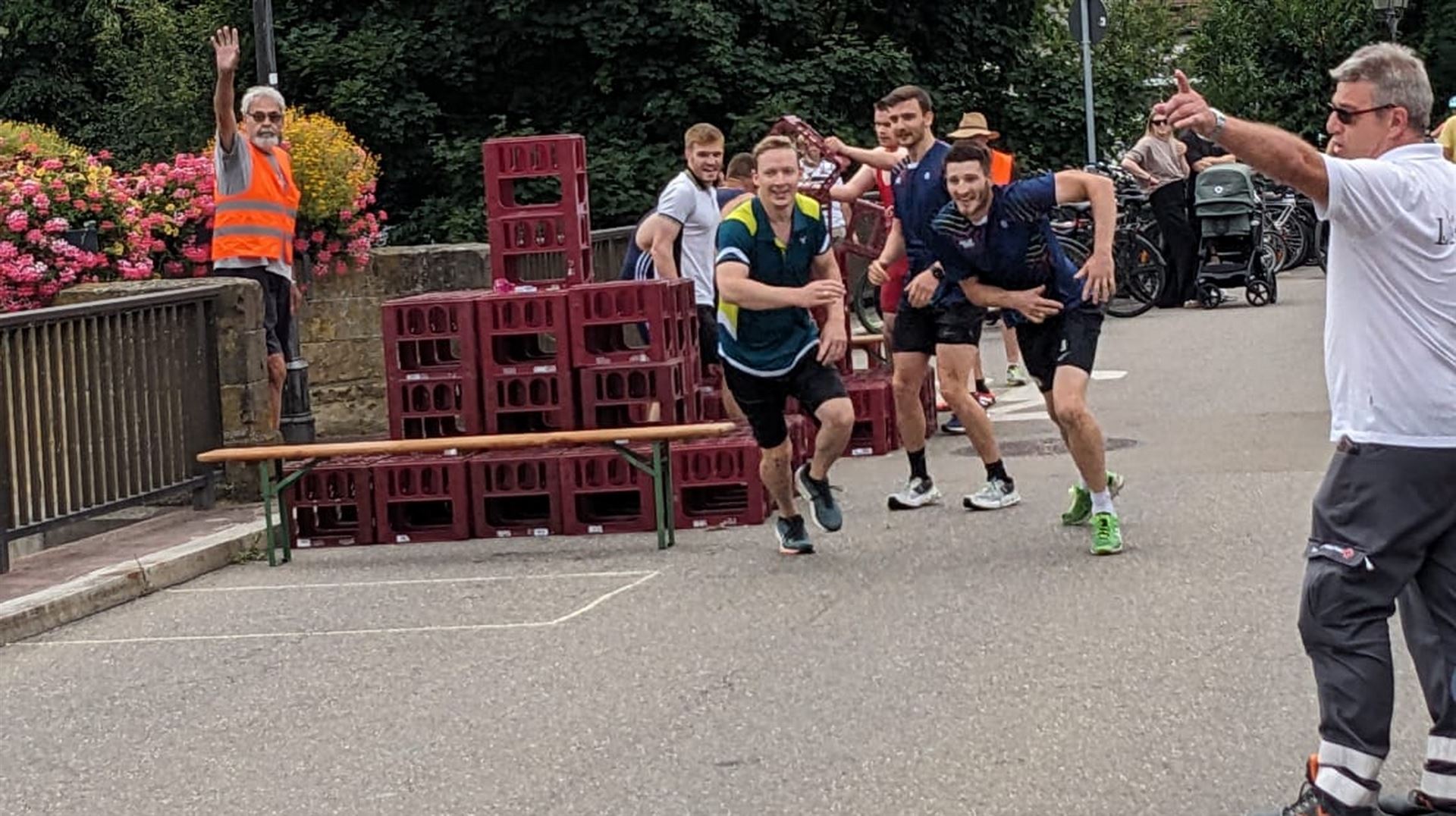 Disziplinen: • Paddeln • Laufen • Weinkisten stapeln
