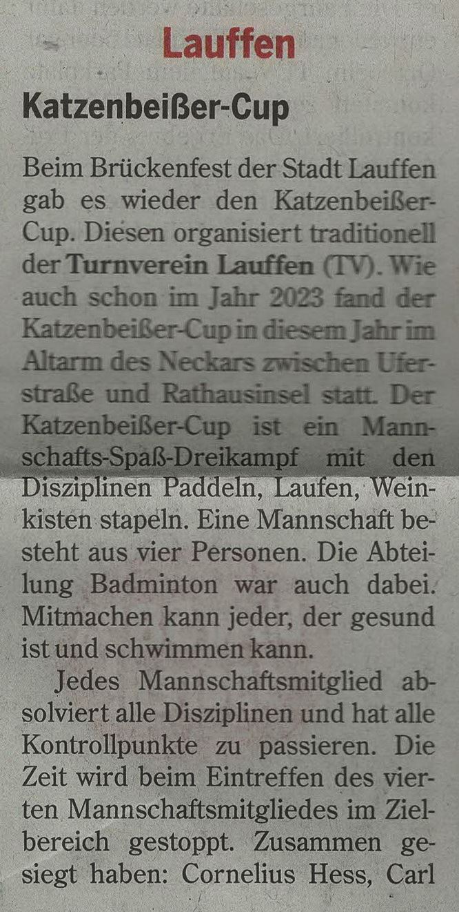 Auch die Badmintonabteilung des TVLauffen erscheint des Öfteren mal in der Presse, so auch hier in der