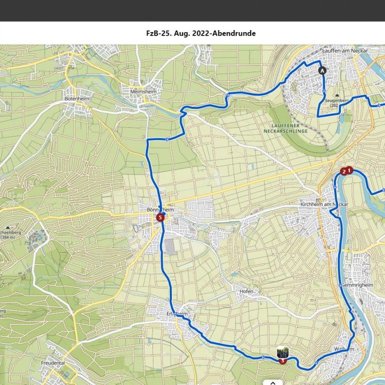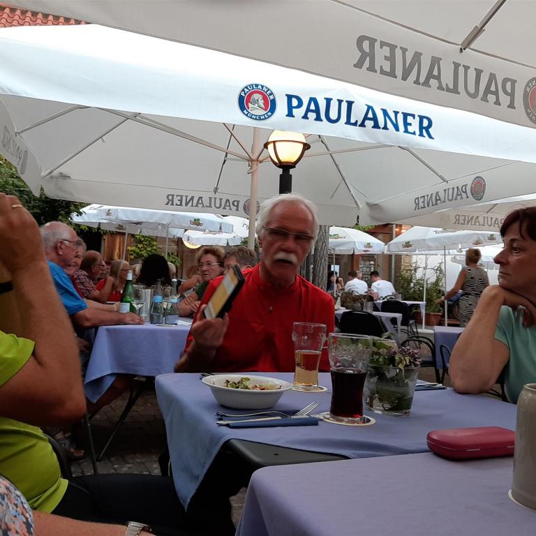 Eine Radtour von Lauffen, über Kirchheim, durchs Baumbachtal nach Bönnigheim. In der "Alten Apotheke" ging man Essen.