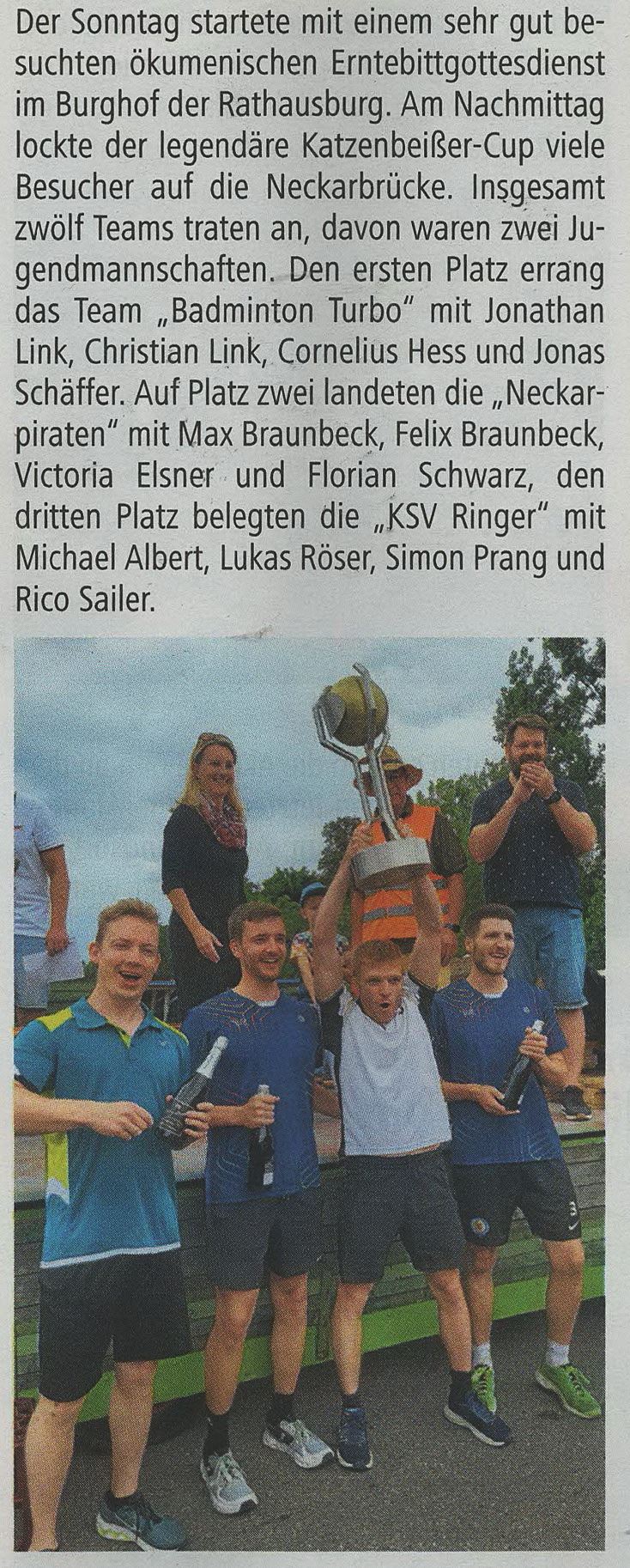 Auch die Badmintonabteilung des TVLauffen erscheint des Öfteren mal in der Presse, so auch hier im